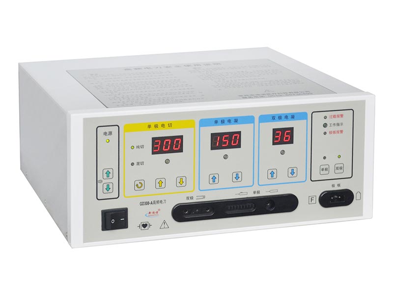 GD308系列高頻電刀是一種多功能大功率高頻手術設備,適用于各種外科手術,包括普外、骨科、胸外科、婦科、泌尿外科、神經外科、五官、手術整形、整容外科等,各種規格型號電刀均可配用各種內窺鏡進行腔內電切、電凝手術及取樣。 此高頻電刀均符合國家強制性標準GB9706.1-2007、GB9706.4-2009和GB9706.19-2000(內窺鏡專用標準)的要求。