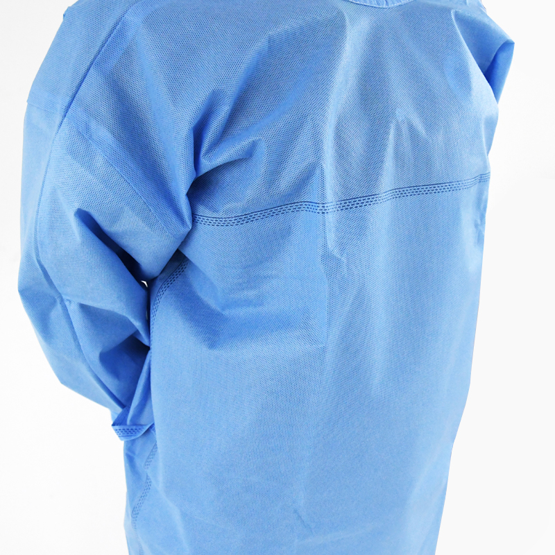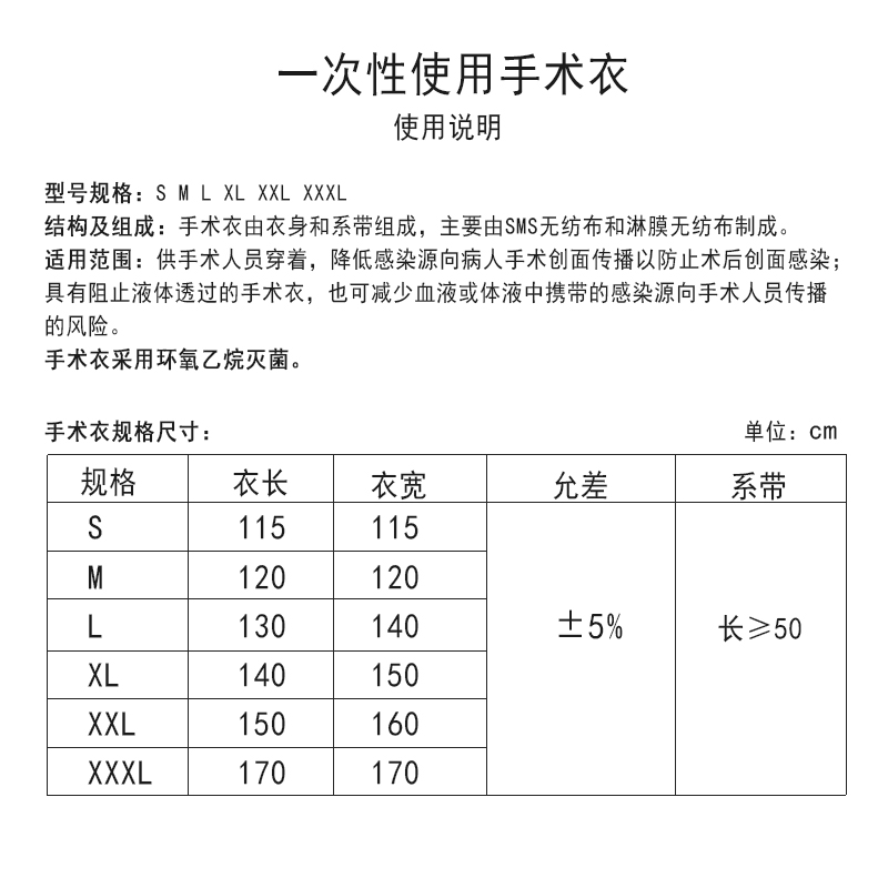 一次性手術衣由衣身和系帶組成,主要有SMS無紡布和淋膜無紡布制成的。可以降低感染源向病人手術創面傳播以防止術后創面感染,可以阻止液體透過。