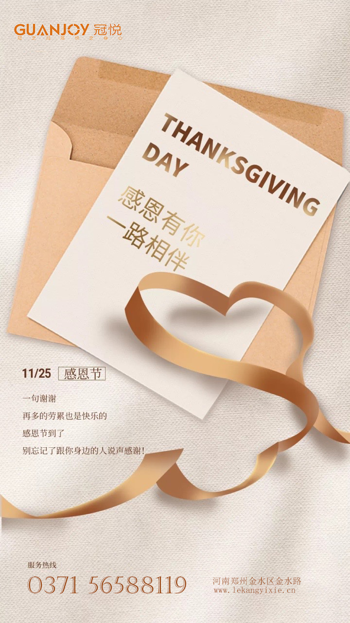 學貴有恒,孜孜以求;業貴于精,卓爾不群;情貴專一,忠貞不渝;志貴高遠,勇往直前;人貴知恩,不忘滴水。感恩節來臨之際,感謝大家對樂康醫療的支持,我們會再接再厲,繼續為大家提供更好的產品和服務!