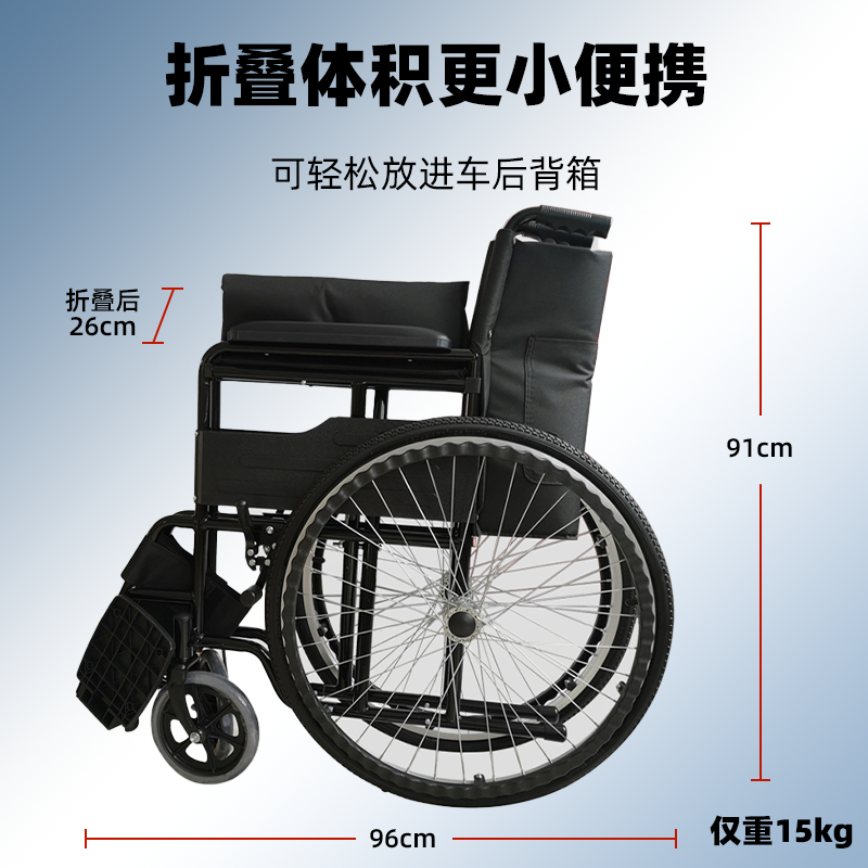 根據輪椅的驅動方式不同,可分為電動輪椅和手動輪椅。手動輪椅是指以使用者手驅動、腳踏驅動或陪伴者推動的輪椅車,分為標準型(成人型)和小型。輪椅的腳踏板、扶手都是可以拆卸的,以便使用者完成轉移動作。在具備良好的伸肘及抓握條件時,盡量選擇手動輪椅,避免因長期使用電動輪椅而導致心肺、骨骼、肌肉等并發癥。