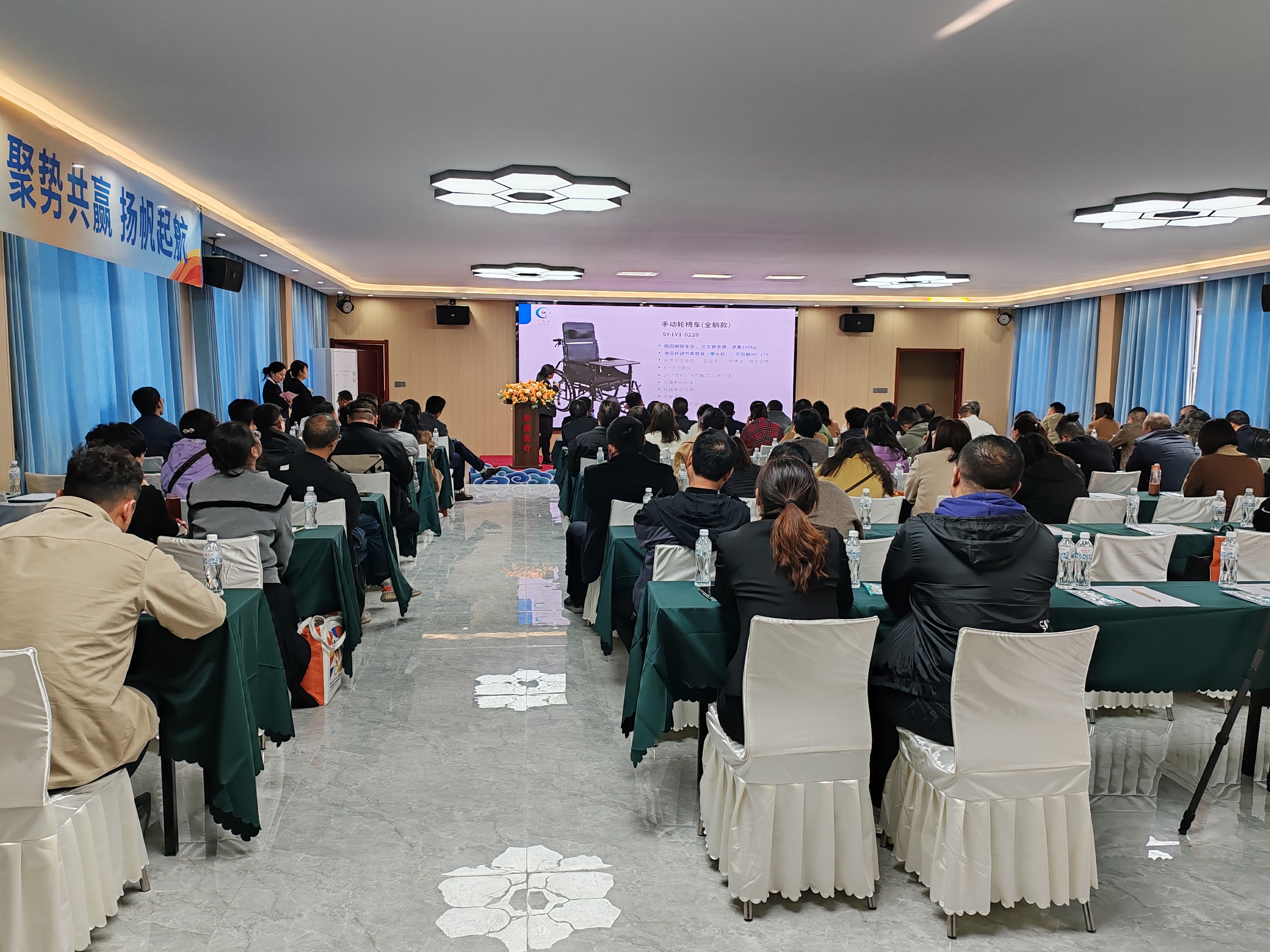 參觀后正式開始本次會議,會議中,樂康醫療總經理張平在致辭中表示:“鄭州市樂康醫療器械有限公司于2003年成立以來,本著做好“為全民健康產業服務”的初心,在健康醫療領域不斷深耕,為醫療事業的發展貢獻自身力量。2014年建設思源工廠,公司依托業務系統平臺實現信息化管理,成立專業研發團隊,先后建立潔凈車間、五金制造車間、注塑車間、電子裝配車間、輪椅裝配車間、智能自動化倉儲,不斷成長為集醫療器械研發、生產、倉儲、物流和銷售一體化的專業供應商。先后推出助行系列、防護系列、保健系列,醫用耗材系列等多品類醫療產品。未來思源將持續重視技術創新、標準建設、體系建立等工作,推出更多符合時代的健康醫療新產品,讓更多的生命健康得以保障”。