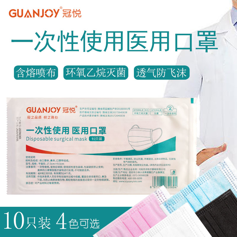 樂康醫療器械_冠悅一次性醫用口罩10支裝紙塑包裝